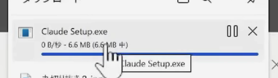 Windowsボタンをクリックすると、.exeファイルのダウンロードが自動で始まります。ダウンロードが終わると、ブラウザの画面下部(または右上)に完了通知が出るのでクリックしてください